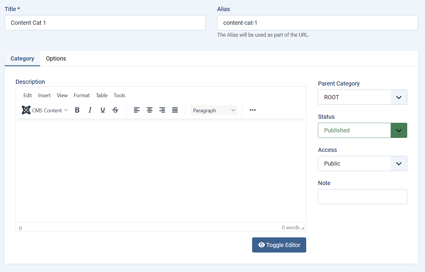 The edit interface follows standard Joomla patterns, ensuring consistency with core category management. This familiarity reduces the learning curve and helps administrators work efficiently.